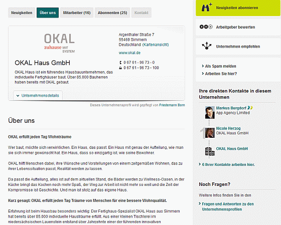 Auf Xing helfen wir unseren Kunden bei der Erstellung einer Unternehmensseite, übernehmen die Kommunikation mit Xing und stellen sämtliche Texte bereit, darunter auch Texte für Stellenanzeigen.